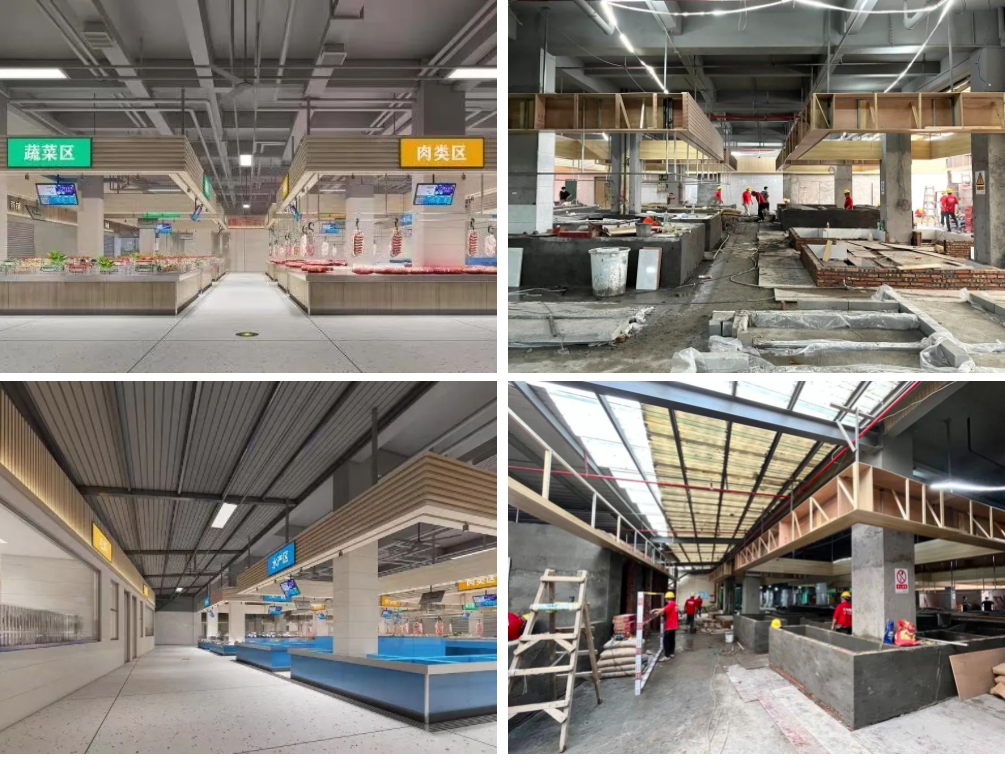 大乘建筑充分借鑒過往施工經(jīng)驗,對標先進,拓寬思路;確保“廣東省2022年推進農(nóng)貿(mào)市場民生實事”其中之一下汴市場科學(xué)升級改造。
