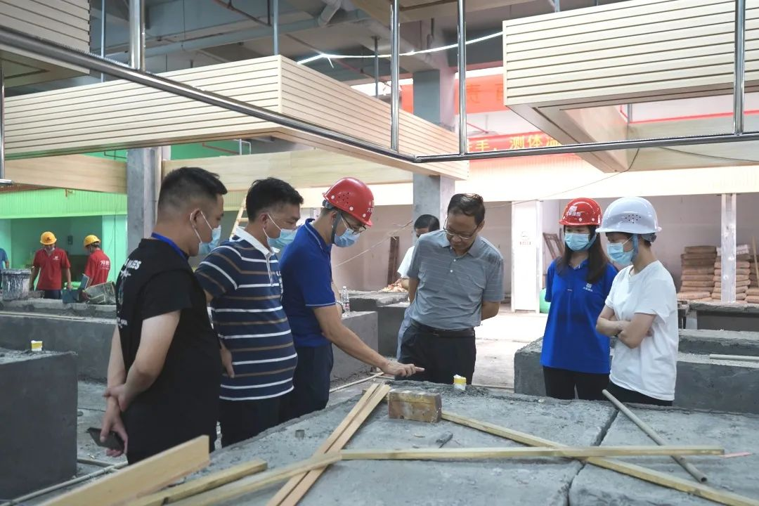 依照東莞市政府印發(fā)的《東莞市農(nóng)貿(mào)市場品質(zhì)提升三年行動方案》的相關(guān)標準及指引,大乘建筑項目負責(zé)人及技術(shù)人員向督導(dǎo)組介紹了攤位設(shè)置、商鋪裝修、地板鋪設(shè)、照明設(shè)計等相關(guān)工藝及施工進度。尹柱堅四級調(diào)研員對大乘建筑豐富的施工經(jīng)驗和高速的施工進度給予了充分肯定。
