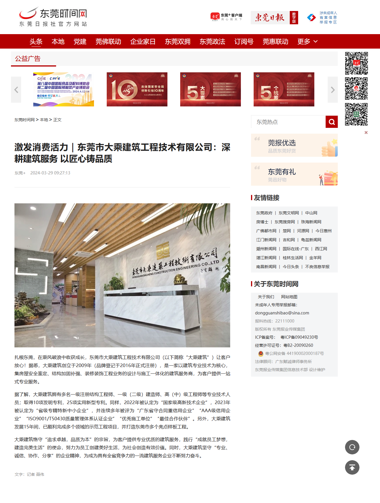 東莞日?qǐng)?bào)-激發(fā)消費(fèi)活力|東莞市大乘建筑工程技術(shù)有限公司:深耕建筑服務(wù) 以匠心鑄品質(zhì)