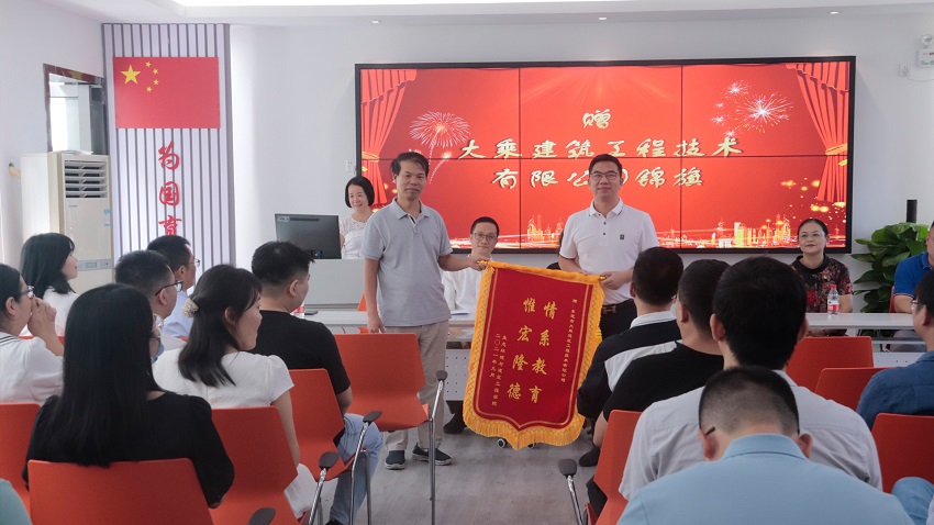 “教工小家”是學(xué)院為豐富老師工作之余的休閑生活,聯(lián)合東莞市大乘建筑工程技術(shù)有限公司共同打造的。學(xué)院授予大乘建筑“情系教育  惟宏隆德”錦旗。
