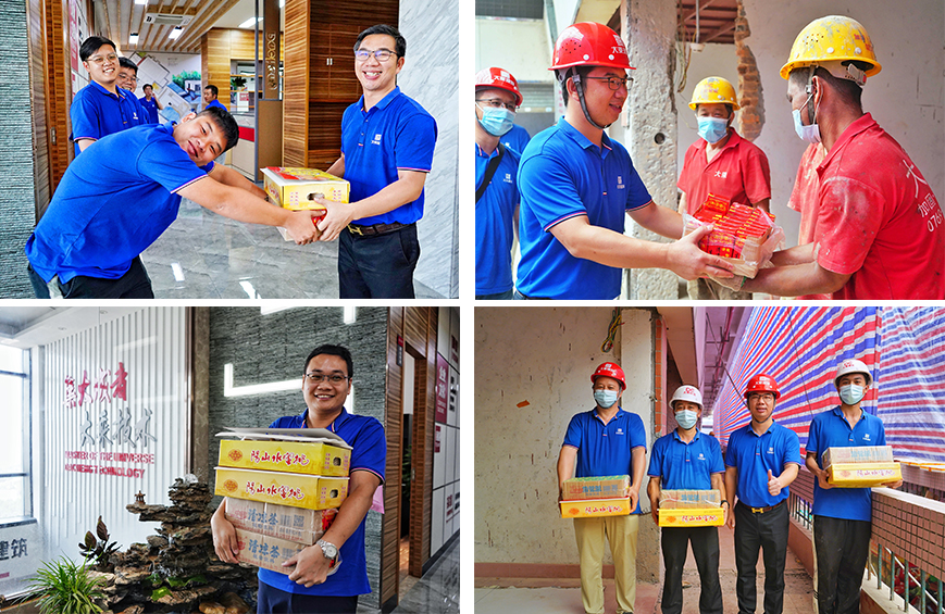 7月24日,總經(jīng)理羅偉全、副總經(jīng)理嚴(yán)瑾、工程部經(jīng)理周昌亮等公司領(lǐng)導(dǎo)一早分別出發(fā)前往在建項(xiàng)目現(xiàn)場(chǎng),親切慰問(wèn)堅(jiān)守在一線工作的員工們,為大家派發(fā)清涼飲品與水果。